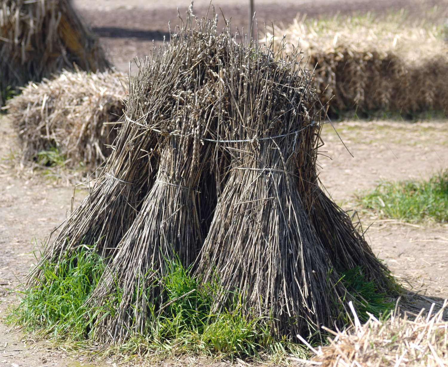 Zum Trocknen wurde Dinkel nach dem Mähen in Garben aufgestellt